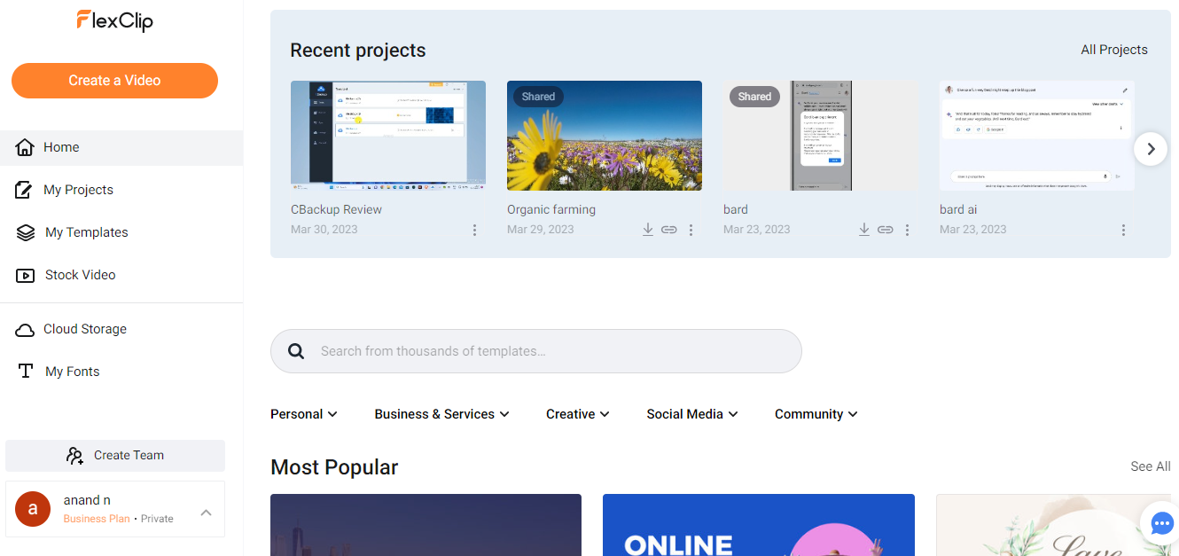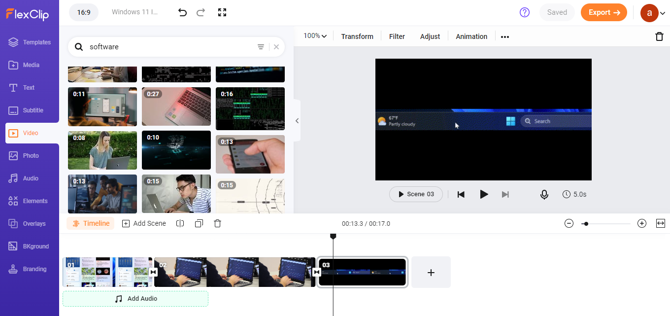 FlexClip includes stock photos, videos, and audio. You can add them to your video for an enhanced user experience. You will not receive any copyright strike from YouTube because the stock media content is royalty-free. You just need to select the relevant option from the left-side navigation panel, search and select the required media. You will find tons of fresh templates. For instance, a simple search using the keyword software throws several awesome videos.