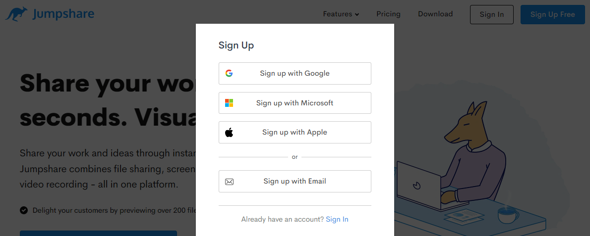 To work with ScreenPal free version, you should select Sign up, it’s Free button from the home page. You will view a page as shown below.