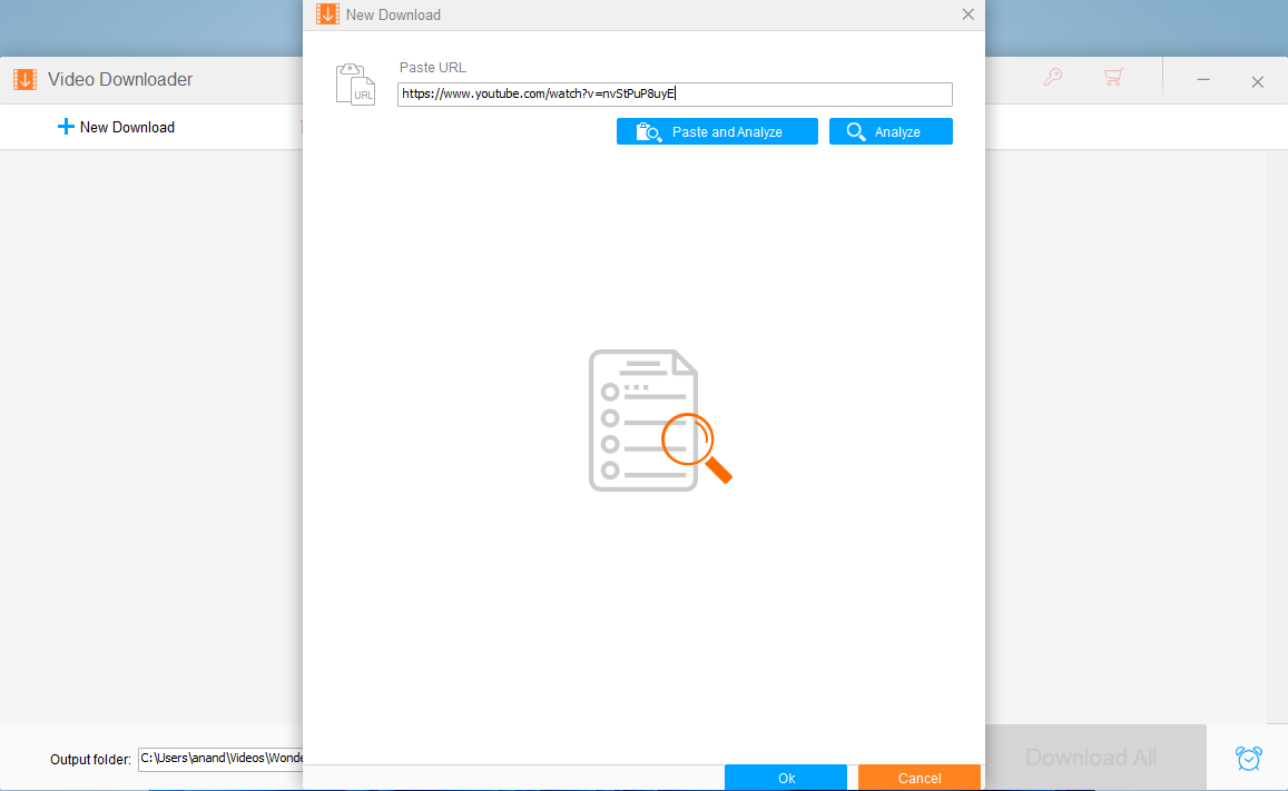 If you select the New Download button, you will view a new dialog. If you had copied a YouTube video, then the relevant URL will appear on the Textbox.