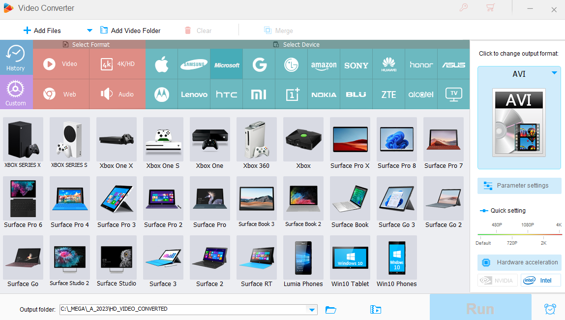 You can also convert videos based on the devices. For instance, if you select Microsoft, you will view the list of devices. You have to select a relevant device and the source file will be converted based on the selected device.