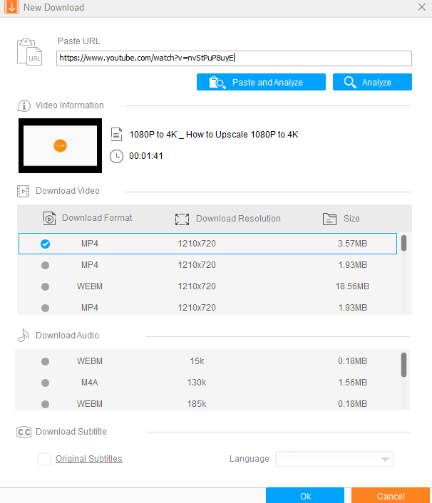 If you select Analyze button, you will view several formats using which you can download the videos. You can select the desired format and download the video.