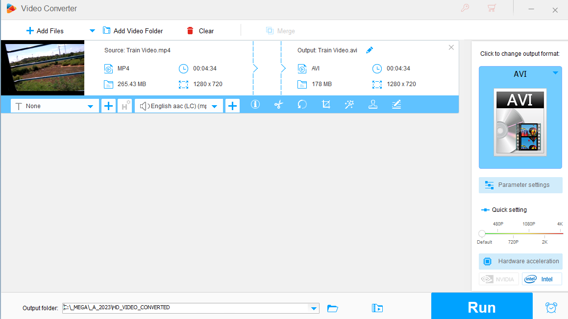 You can also change the output format as per your preference. The video will be converted upon clicking the Run button. You will view the progress as shown below.